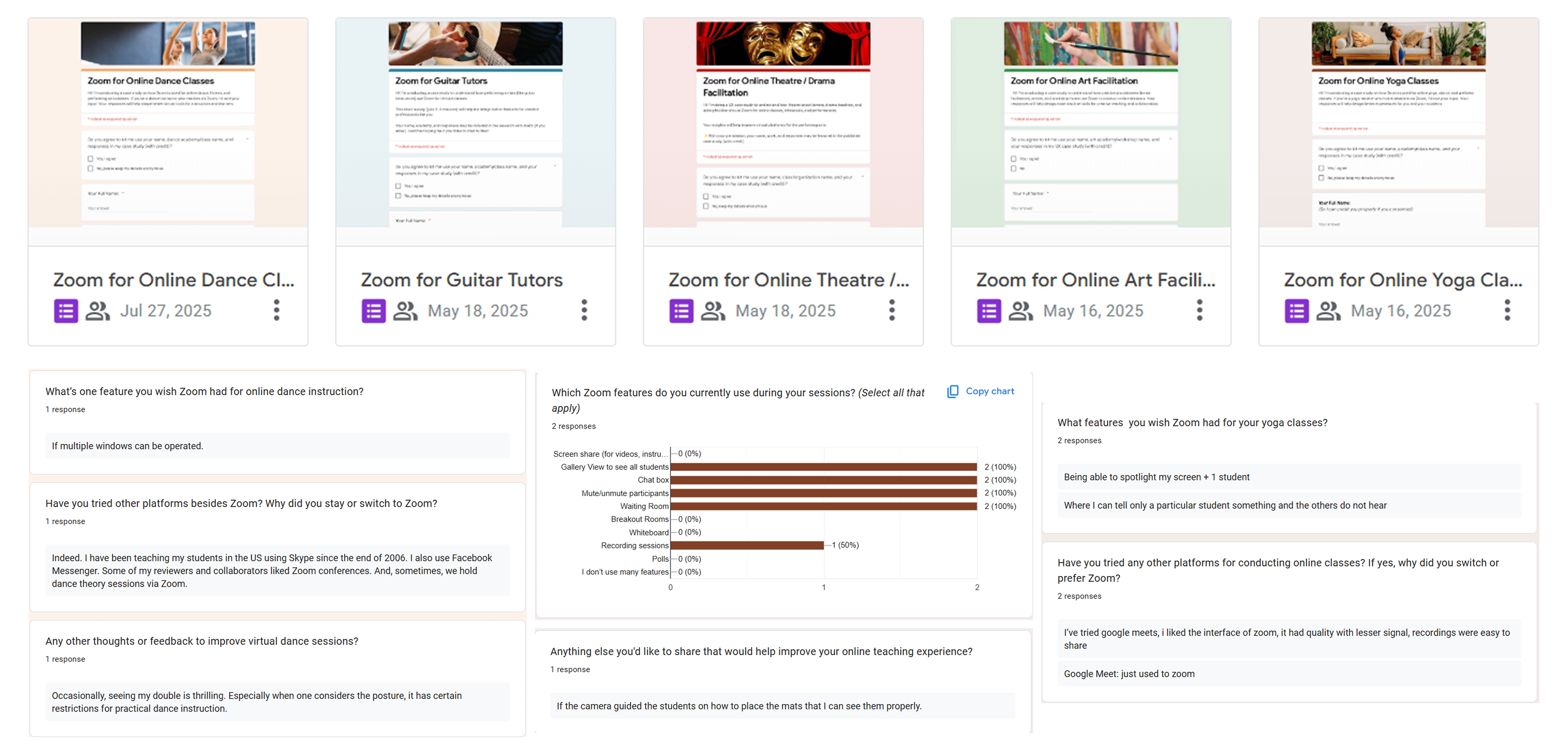 I conducted online surveys and 1:1 interviews to understand how instructors use Zoom today and how Artistic Studio Modes improve their experience,