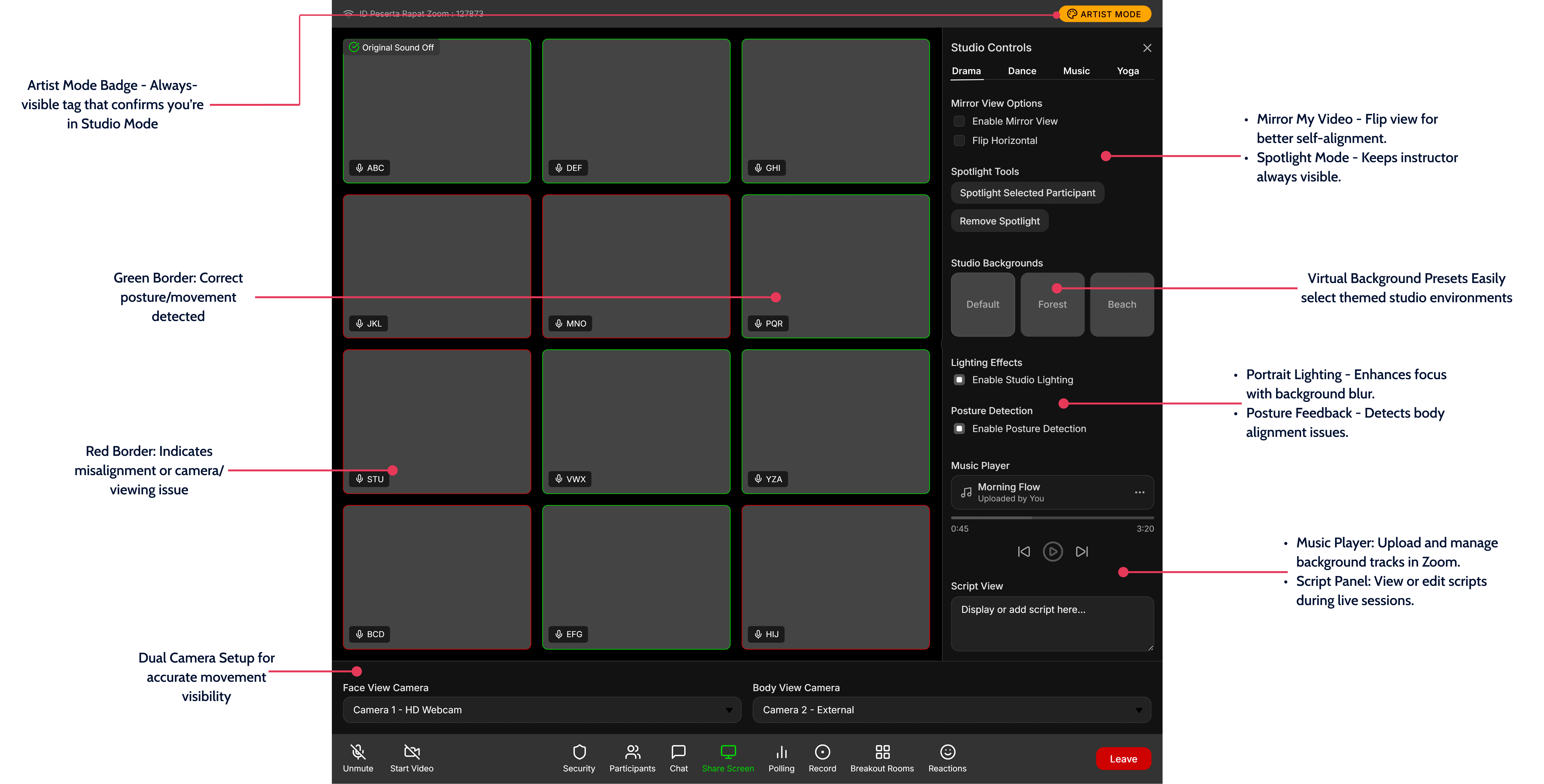 Zoom Artist Studio gives a creative setup but works just like normal Zoom meetings.