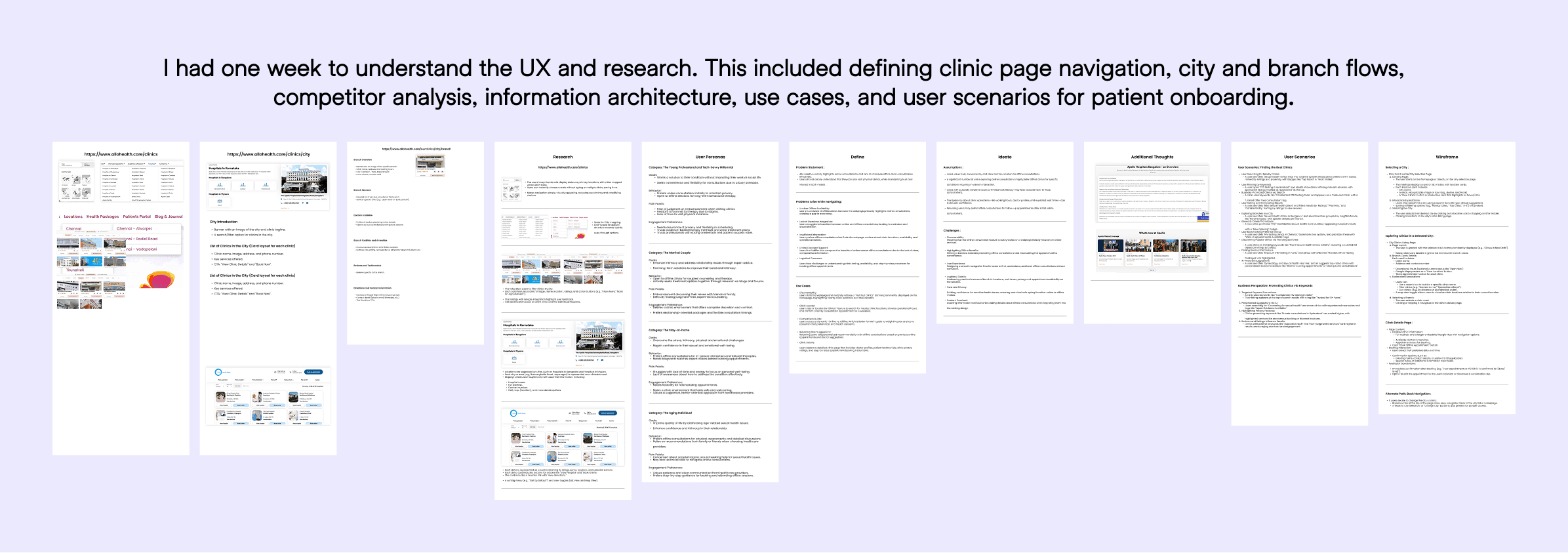 I delivered UX documentation that included competitor analysis, IA, user personas, defining the patient experience for online consultation onboarding, and use cases on Clinic State, City and Branch.